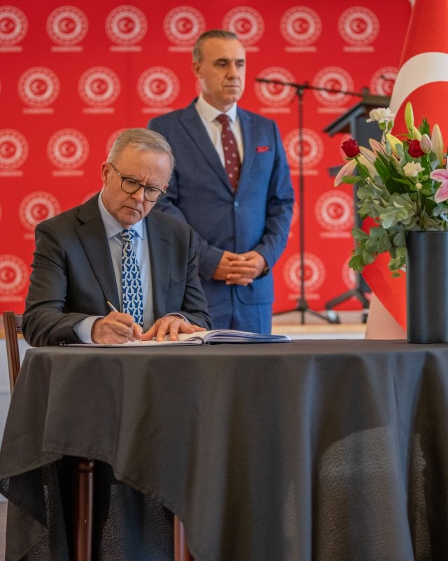 Avustralya Başbakanı Albanese, depremzedeler anısına açılan taziye defterini imzaladı